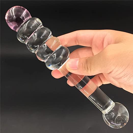 Clear Beaded Glass Anal & Vaginal Dildo Suitable for Temperature Play