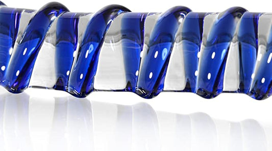 Blue Spiral Ribbed Texture Glass Dildo for Vaginal & Anal Penetration