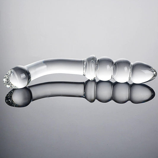 Clear Curved Glass Double Ended Penetration Anal & Vaginal Dildo Toy